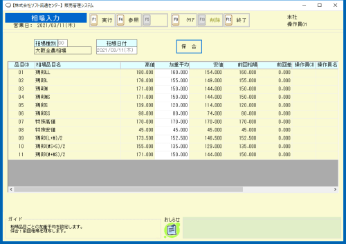 ●相場登録は、保合機能でスムーズな登録が可能です。