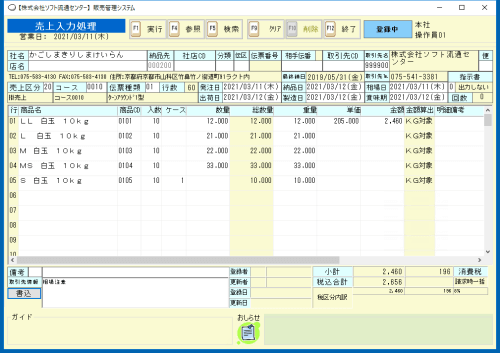 ●納品先毎の販売商品を初期表示することで、入力と商品間違いを防止します。