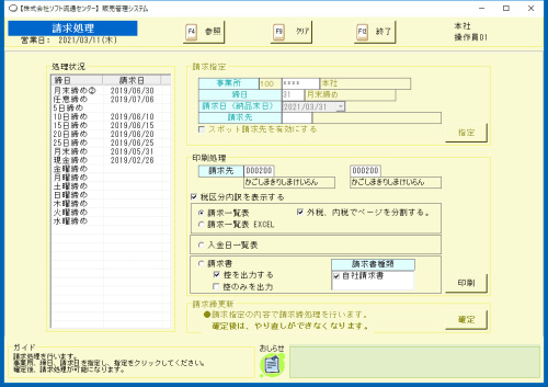 ●請求先毎に、締めグループの設定が可能です。早い締め、遅い締め、チェーン店毎に請求書の発行ができます。